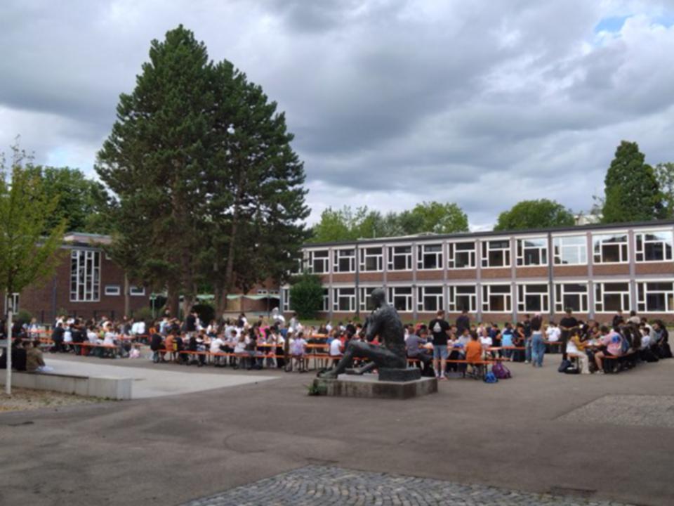 Kurz vor den Sommerferien gab es noch eine ganz besondere Veranstaltung. Die SMV hatte für alle Klassen ein gemeinsames Schulfrühstück auf dem Pausenhof organisiert.
