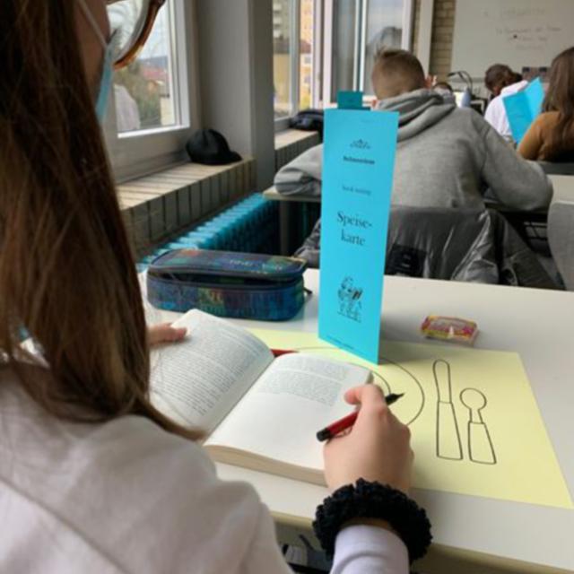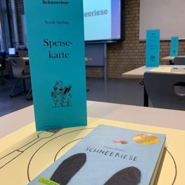 Zur Einführung der Ganzschrift "Schneeriese" in einer 8. Klasse führten die Schüler ein "Book-Tasting" mit Speisekarte und Brausestäbchen durch. Es sind schon alle gespannt darauf, wie sich die Liebesgeschichte zwischen Stella und Adrian weiter entwickeln wird.