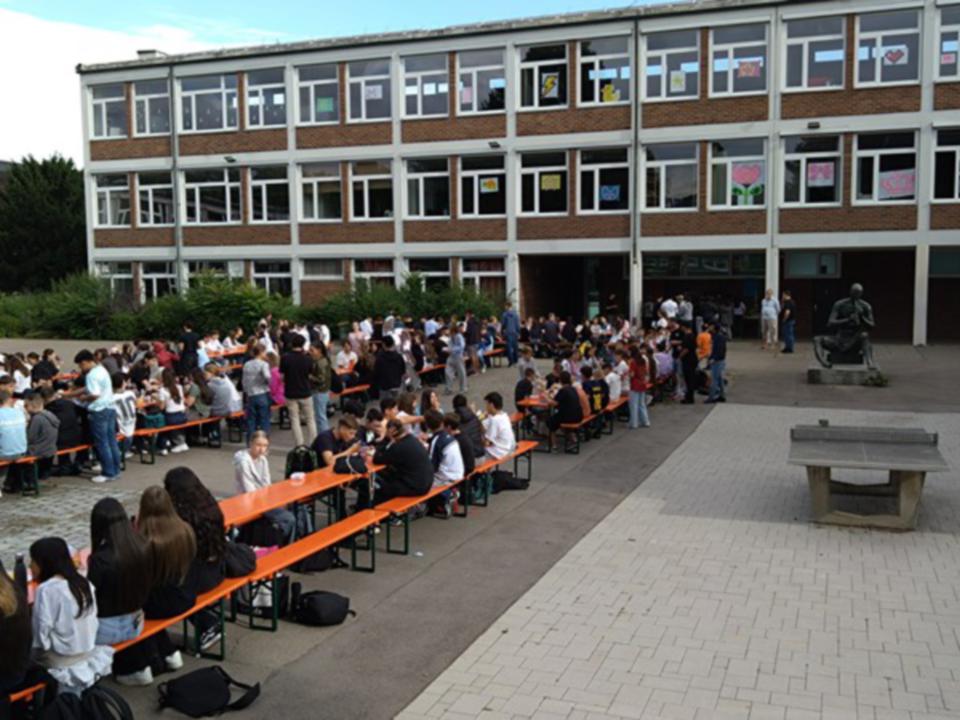 Kurz vor den Sommerferien gab es noch eine ganz besondere Veranstaltung. Die SMV hatte für alle Klassen ein gemeinsames Schulfrühstück auf dem Pausenhof organisiert.